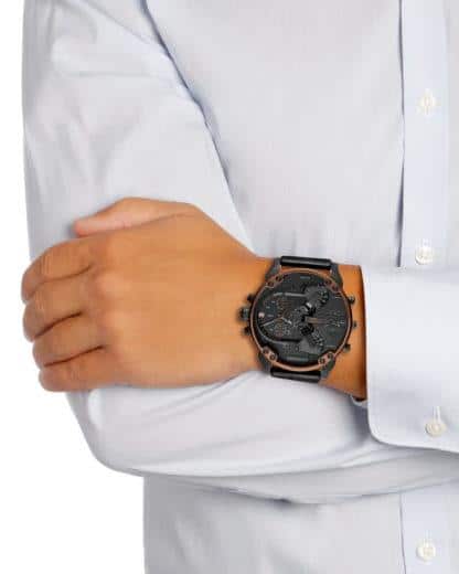 ساعة ديزل من عائلة موديلات مستر دادي DZ 7400 لساعات ليست موضة قديمة كما يتصور البعض. من الطبيعي أنك اليوم تعرف الوقت من خلال هاتفك ولكن من الصعب أن ترى الهاتف دائما خصوصا إذا كنت في اجتماع مهم أليس كذلك من السهل إلقاء النظرة السريعة على معصمك كي تنظّم وقتك لكن البعض يقول لماذا أشتري ساعة ثمينة وأنا لدي أخرى داخل هاتفي؟أولئك الذين ما زالوا يرتدون ساعة ما زالوا يفهمون أهمية الأكسسوارات ولا سيما الرجال. الرجال عادة لا يرتدون المجوهرات ما عدا هذه الساعة هي مصممة لتعكس الذوق الرفيع والجمال والرقي الفريد الذي يليق بسهرة فاخرة،بميناء أسود و أستيك لون أسود بشكل مميز عن ما قبل من الموديلات و تاخذ القطعه شكل دائري باطار وجسم من الستانلس ستيل المعالج حرارياً المقاوم للصدأ ليحظي بتجربة وديمومة رائعه فى الاستخدام بشكل يومي رائع وفعال