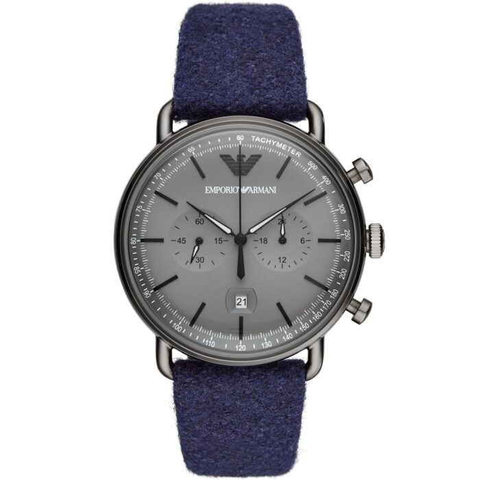 ساعة امبوريو ارماني للرجال أصلية موديل Aviator AR11144 لون رمادي واوستيك الياف صناعية لون ازرق.