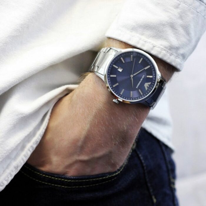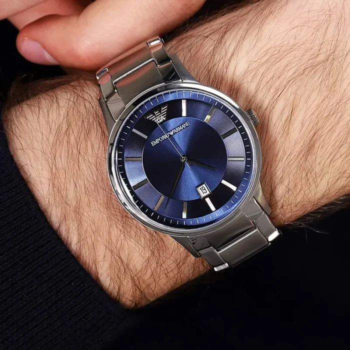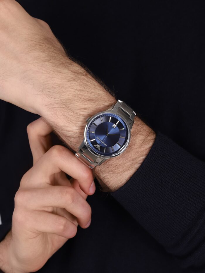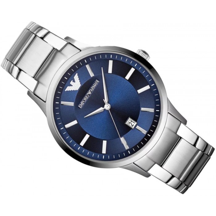 ساعة امبوريو ارماني للرجال أصلية موديل Renato AR11180 لون ازرق و استيك معدن ستانلس لون فضي.
