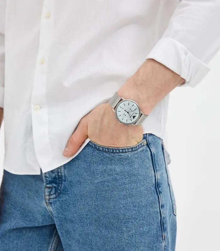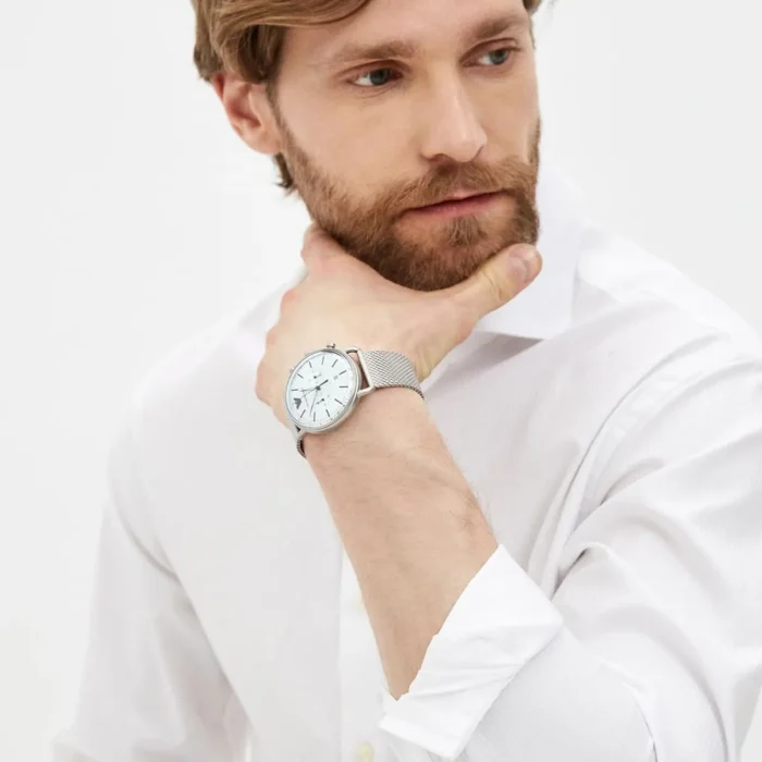 ساعة امبوريو ارماني Emporio Armani للرجال أصلية موديل Aviator AR11288 لون فضي و استيك معدن ستانلس لون فضي.