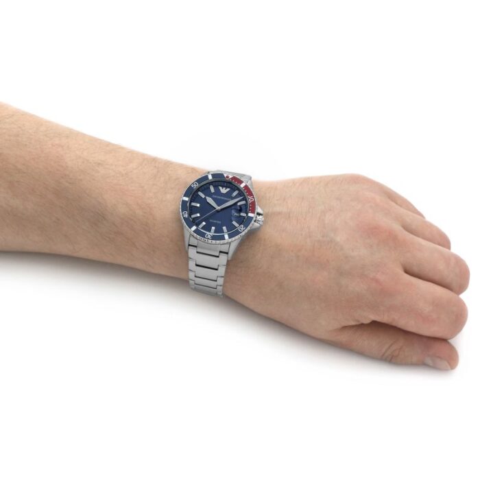 ساعة امبوريو ارماني اصليه للرجال موديل AR11339 بلون ازرق واوستيك معدن بلون فضي.