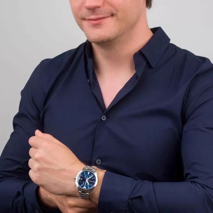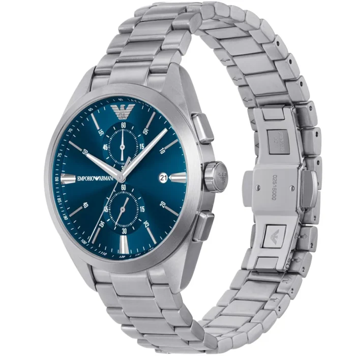 ساعة امبوريو ارماني Emporio Armani للرجال أصلية موديل AR11541 Claudio لون ازرق و استيك معدن ستانلس لون فضي.