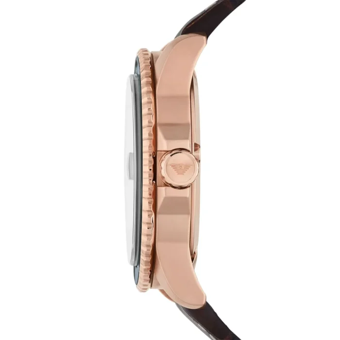 ساعة امبوريو ارماني Emporio Armani للرجال أصلية موديل AR11556 Diver لون ازرق و استيك جلد طبيعي لون بني.