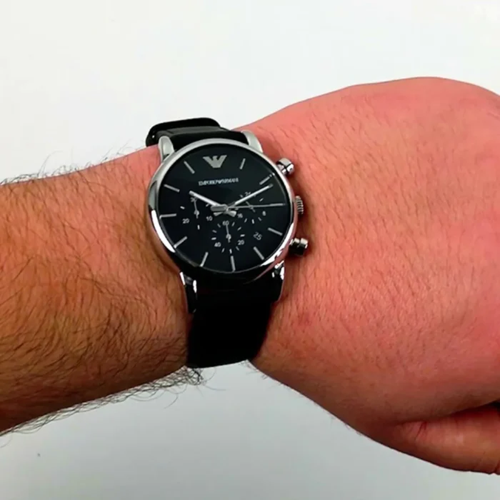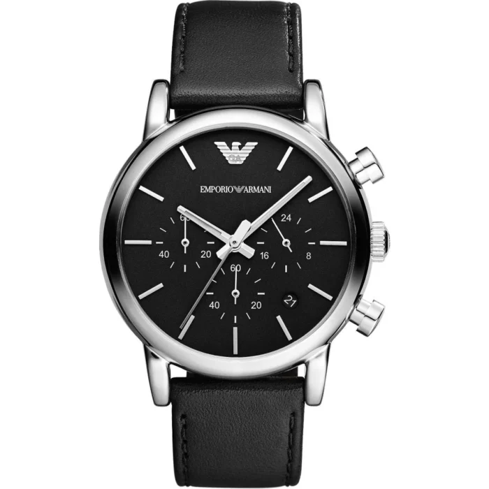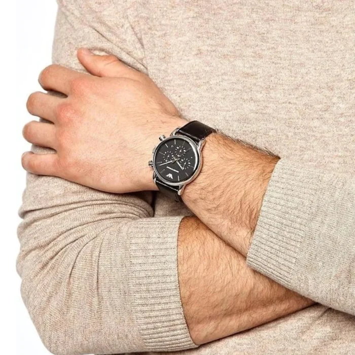 ساعة امبوريو ارماني اصليه للرجال موديل AR1733 بلون اسود واوستيك جلد طبيعي بلون اسود.