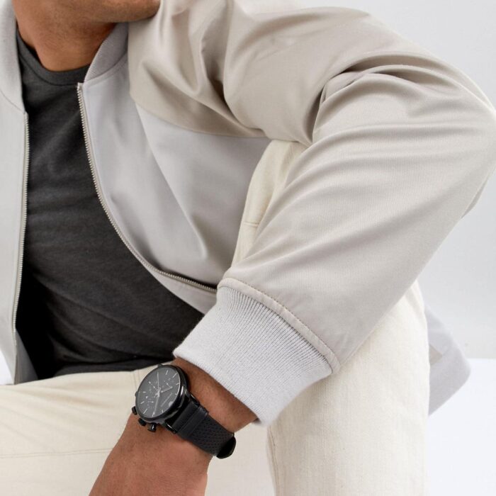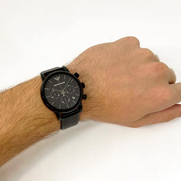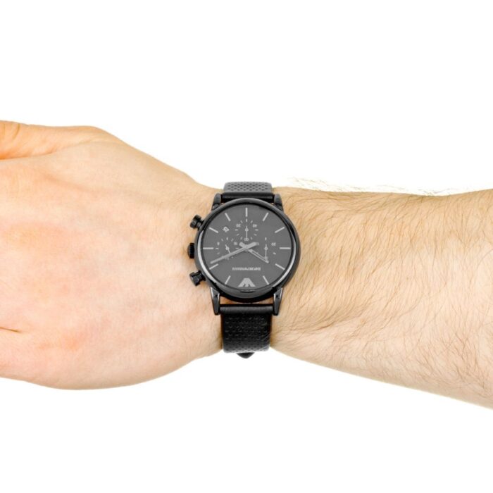 ساعة امبوريو ارماني للرجال أصلية موديل Luigi AR1737 لون اسود و استيك جلد طبيعي لون اسود.