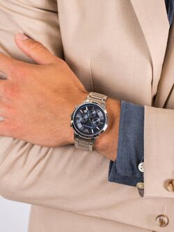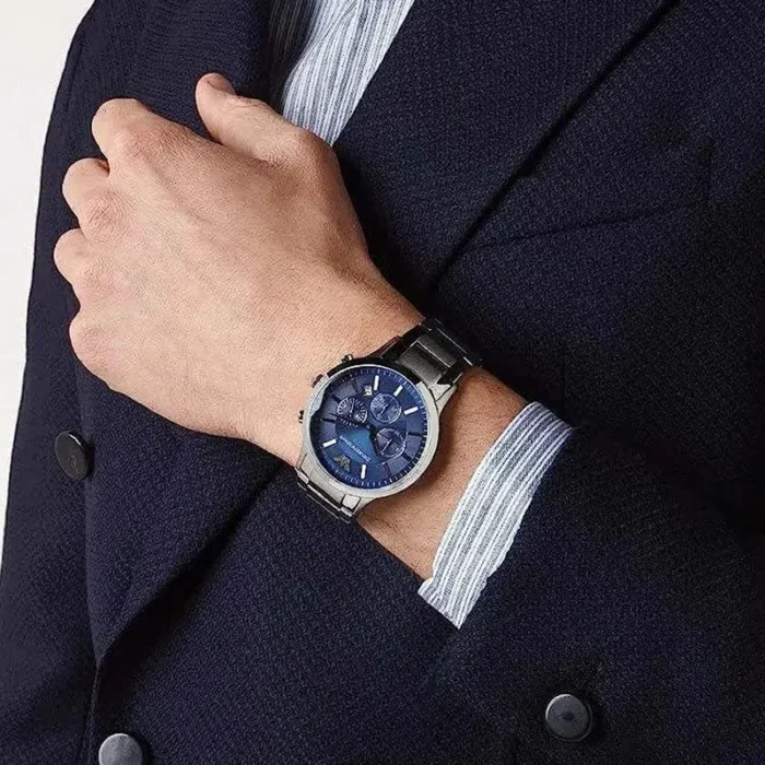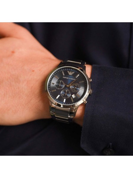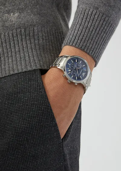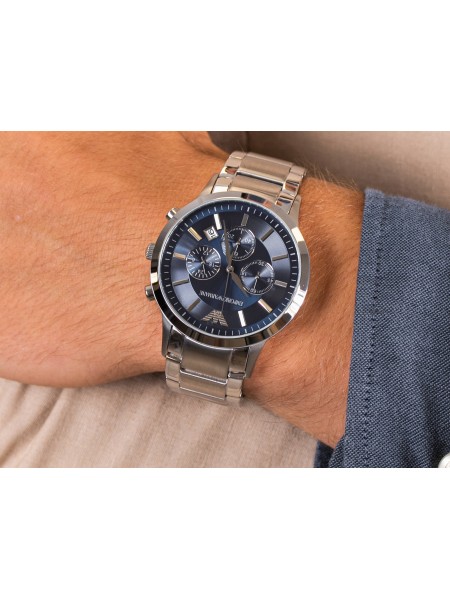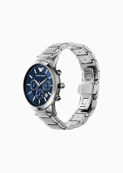 ساعة امبوريو ارماني للرجال اصلية موديل Renato AR2448 لون ازرق واستيك معدن ستانلس لون فضي.