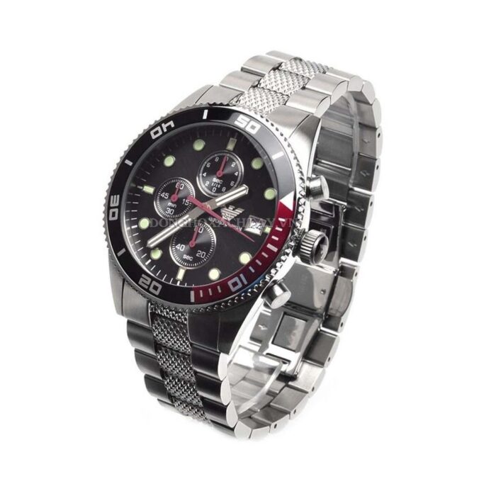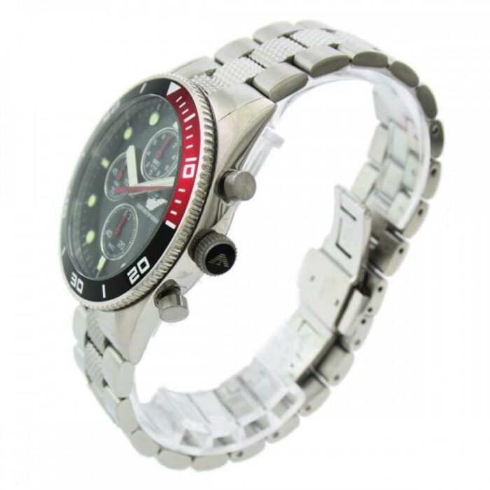 ساعة امبوريو ارماني اصليه للرجال موديل AR5855 بلون اسود واوستيك معدن بلون فضي.