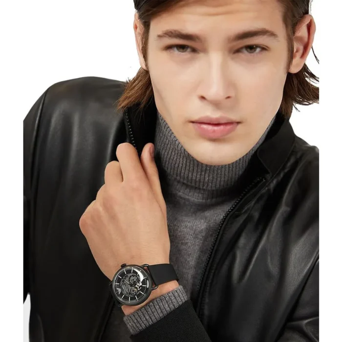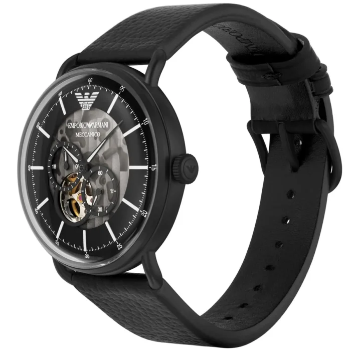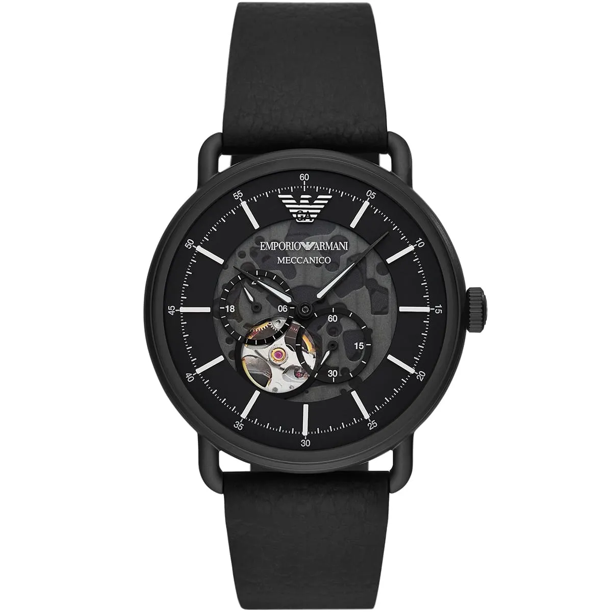 ساعة امبوريو ارماني Emporio Armani للرجال أصلية موديل AR60028 Aviator لون اسود و استيك جلد طبيعي لون اسود.