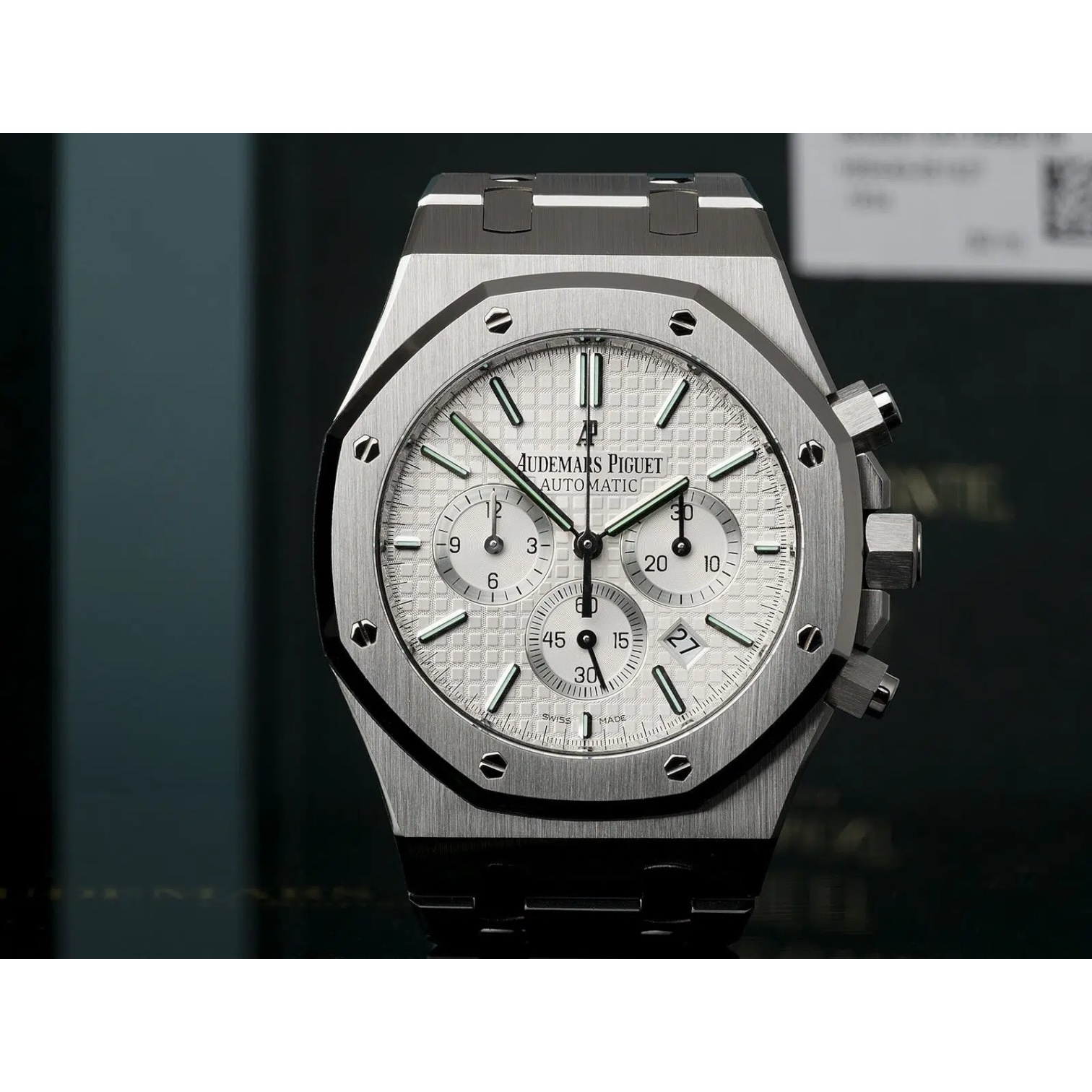 ساعة اوديمار بيغيه رويال أووك ميرور أوريجنال للرجال  موديل (AUDEMARS PIGUET ROYAL OAK) بلون ابيض واوستيك ستنلس ستيل لون فضي