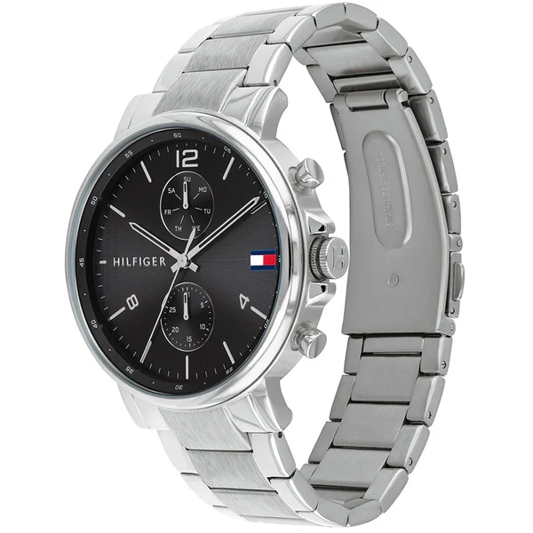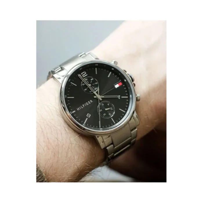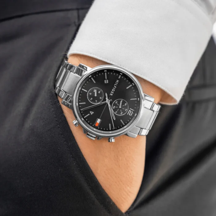 ساعة تومي هيلفيغر للرجال أصلية موديل 1710413 لون اسود و اوستيك معدن ستانلس لون فضي.