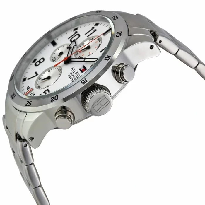 ساعة تومي هيلفيغر للرجال اصلية موديل Trent 1791140 لون ابيض واستيك معدن ستانلس لون فضي