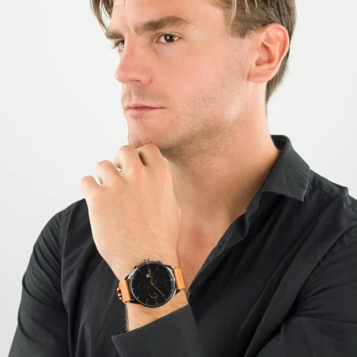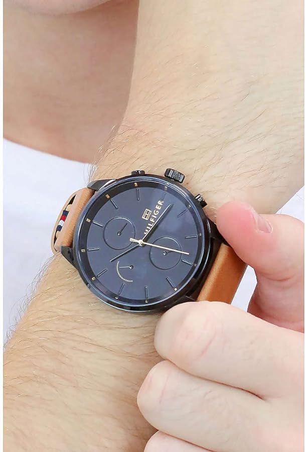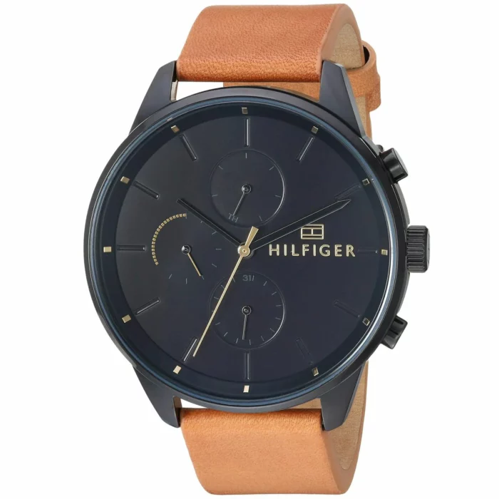 ساعة تومي هيلفيغر للرجال أصلية موديل Chase 1791486 لون اسود و استيك جلد طبيعي لون بني.