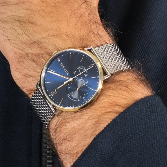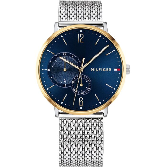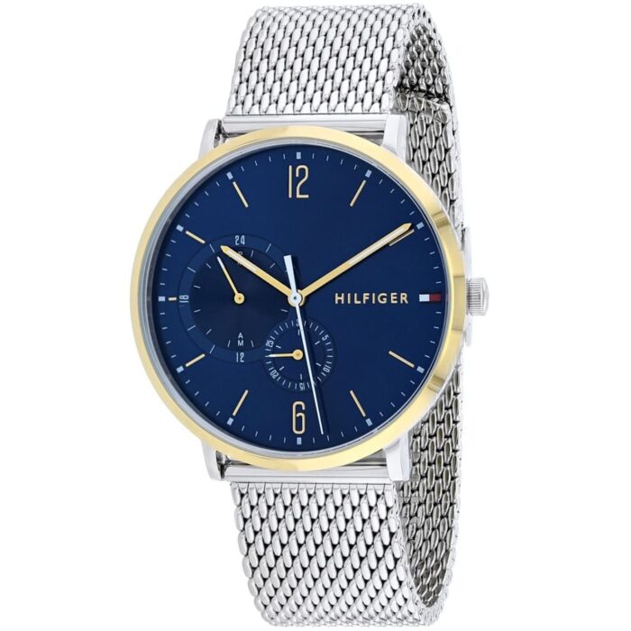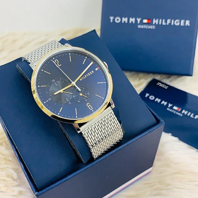 ساعة تومي هيلفيغر للرجال اصلية موديل Brooklyn 1791505 لون ازرق واستيك معدن ستانلس لون فضي.