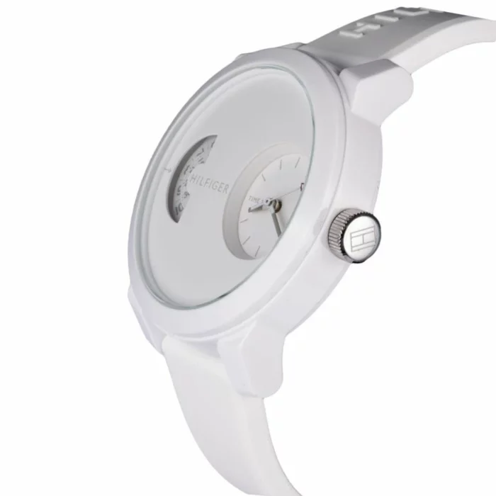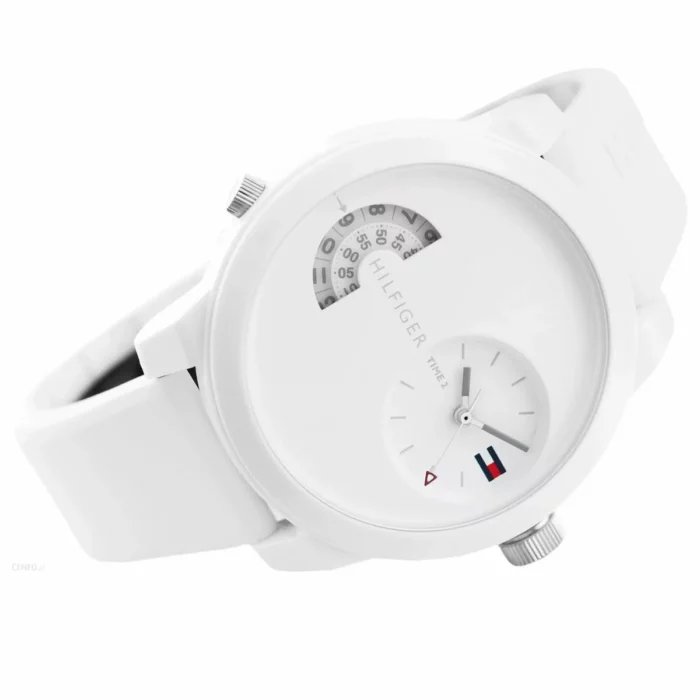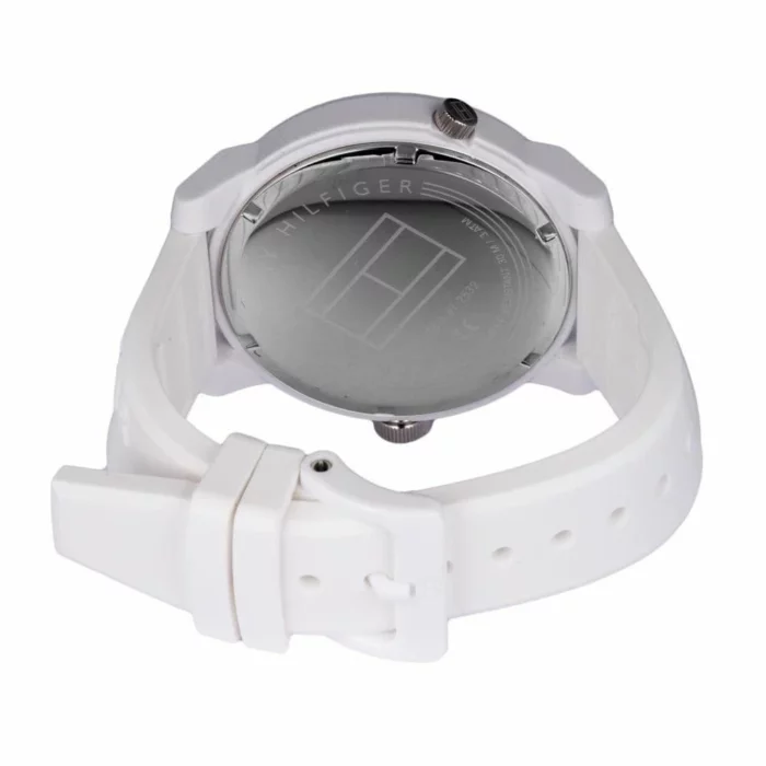 ساعة تومي هيلفيغر للرجال أصلية موديل (دنيم) Denim 1791558 لون ابيض و استيك سيليكون مطاط لون ابيض.