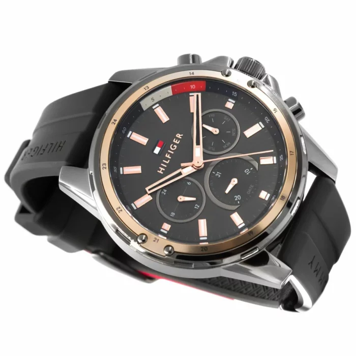 ساعة تومي هيلفيغر للرجال أصلية موديل Mason 1791792 لون رمادي و استيك سيليكون مطاط لون رمادي.