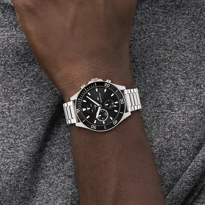 ساعة تومي هيلفيغر للرجال أصلية موديل (لاسون )  LARSON 1791916 بلون اسود و استيك ستانلس ستيل بلون فضي