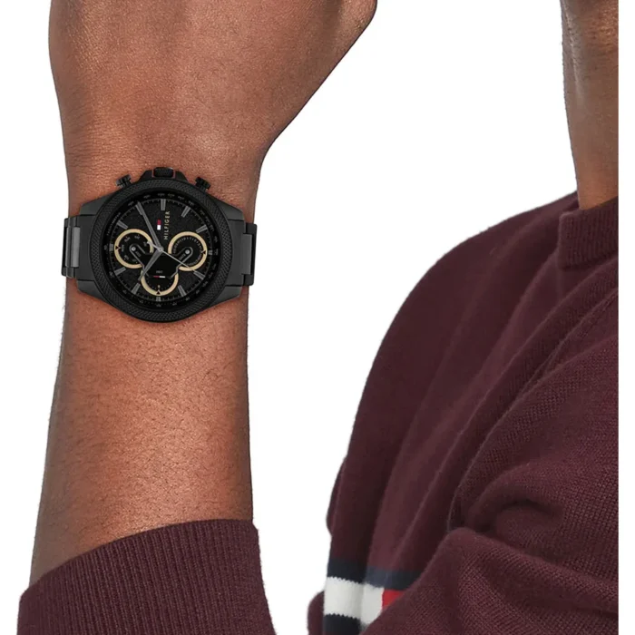 ساعة تومي هيلفيغر للرجال أصلية موديل 1792081 لون اسود و استيك معدن ستانلس لون اسود.