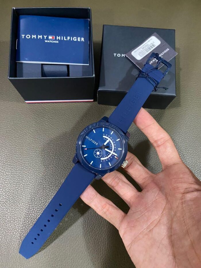 ساعة تومي هيلفيغر للرجال اصلية موديل  1791482 لون ازرق واستيك سيليكون مطاط لون ازرق.