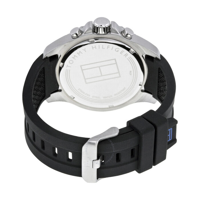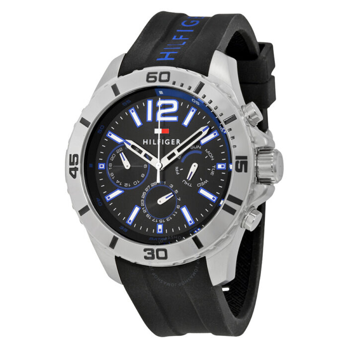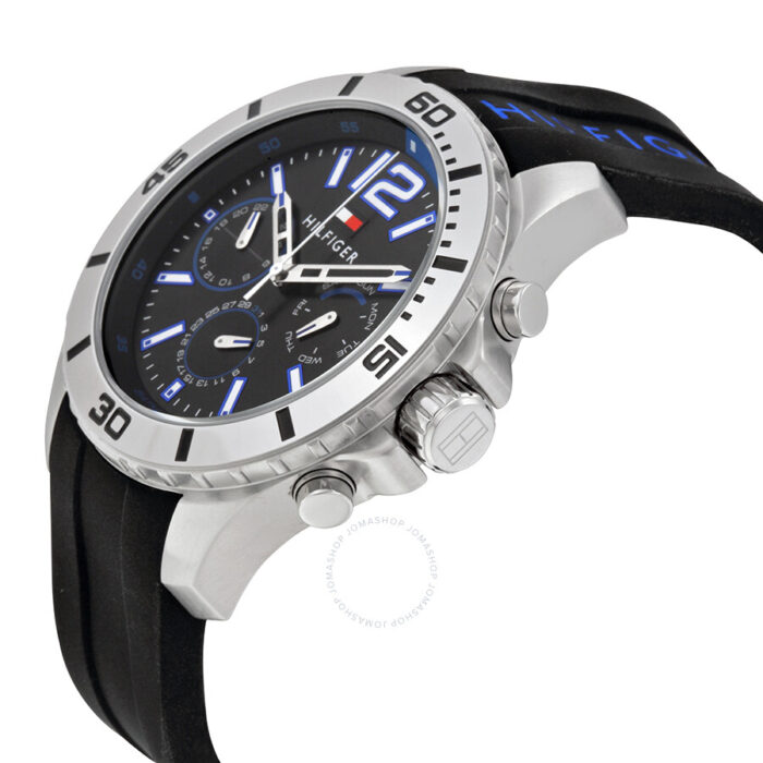 ساعة تومي هيلفيغر للرجال موديل 1791143 Chronograph Cool Sport بلون اسود واستيك سيليكون اسود.