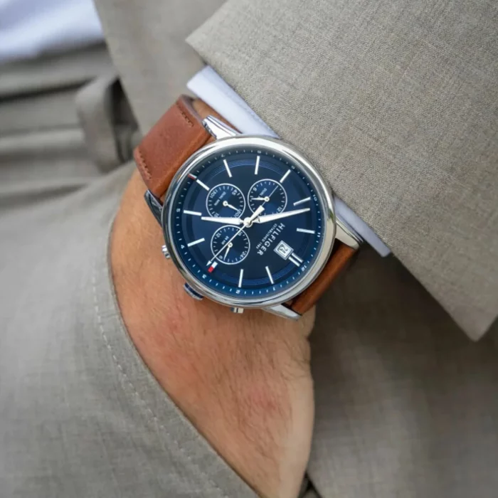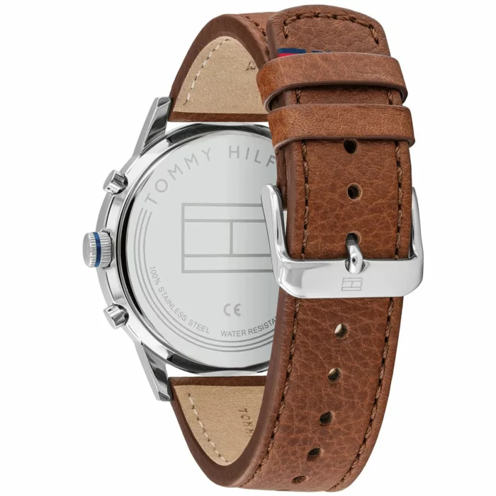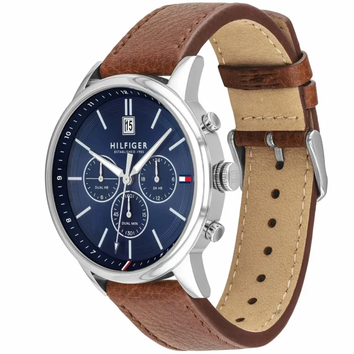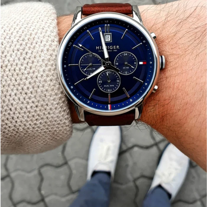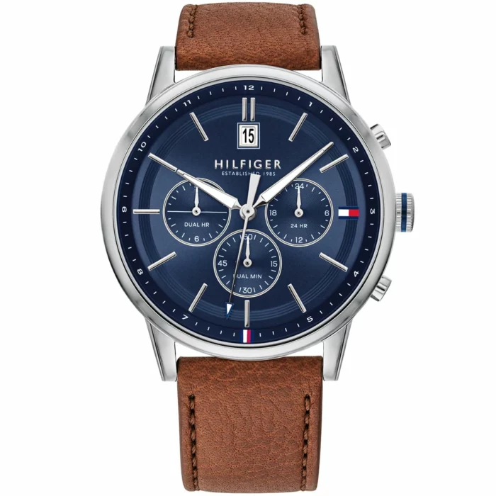 ساعة تومي هيلفيغر Tommy Hilfiger للرجال أصلية موديل 1791629 Kyle لون ازرق و استيك جلد طبيعي لون بني.