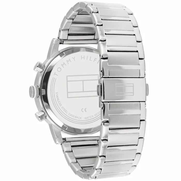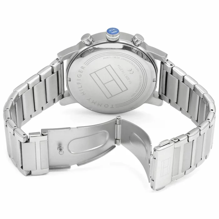 ساعة تومي هيلفيغر Tommy Hilfiger للرجال أصلية موديل 1710401 Kane لون ازرق و استيك معدن ستانلس لون فضي.