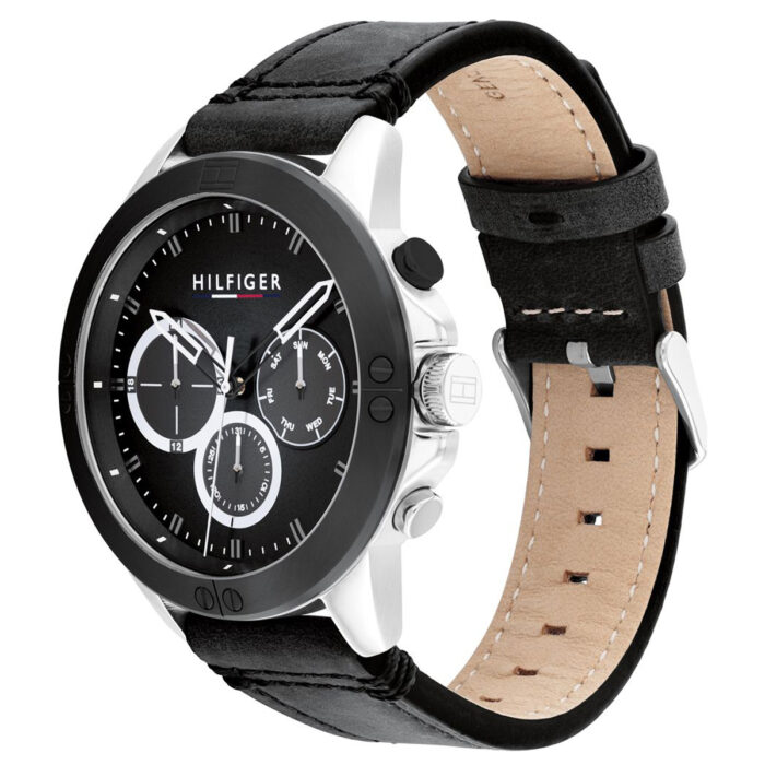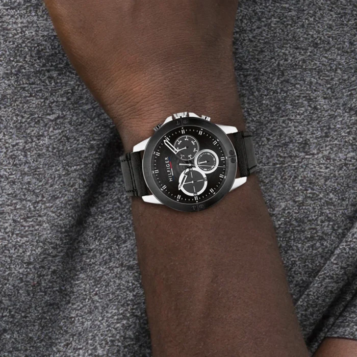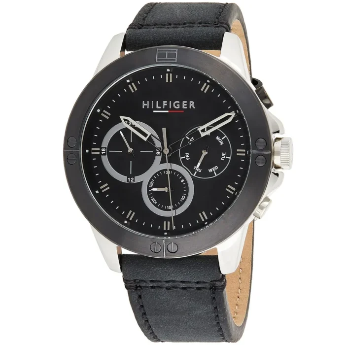 ساعة تومي هيلفيغر للرجال أصلية موديل (هاري) Harley 1791894 لون اسود و استيك جلد طبيعي لون اسود.