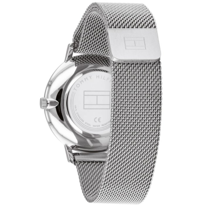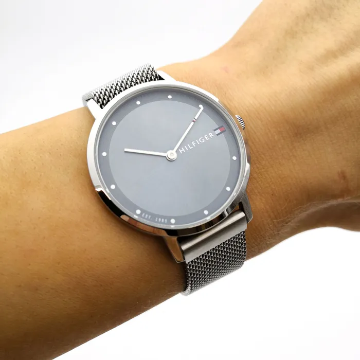 ساعة تومي هيلفيغر Tommy Hilfiger للنساء أصلية موديل 1782148 لون ازرق و استيك معدن ستانلس ستيل لون فضي.