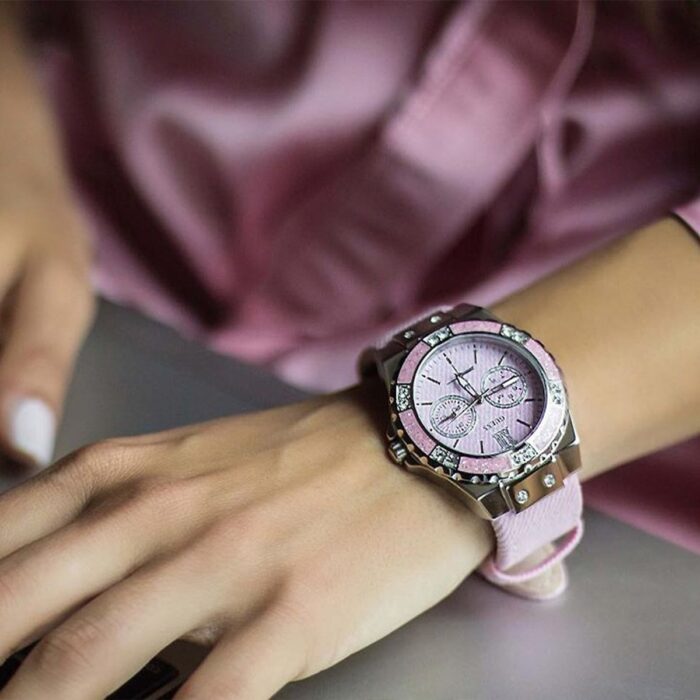 ساعة جيس للنساء اصلية موديل Limelight W0775L15 لون وردي واستيك قماش جينز لون وردي.