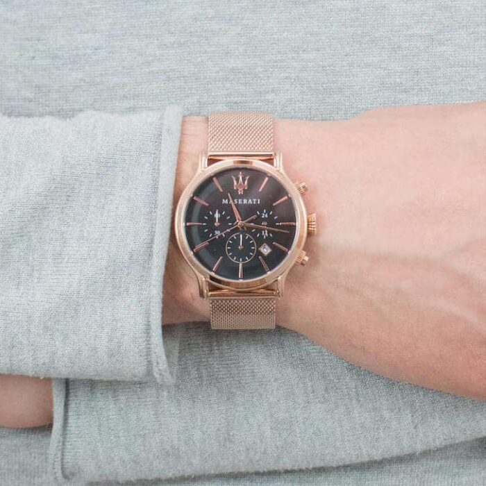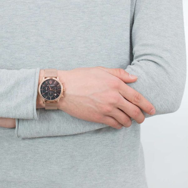 ساعة مازيراتي للرجال أصلية موديل Epoca R8873618005 لون اسود و استيك معدن ستانلس لون روز جولد.