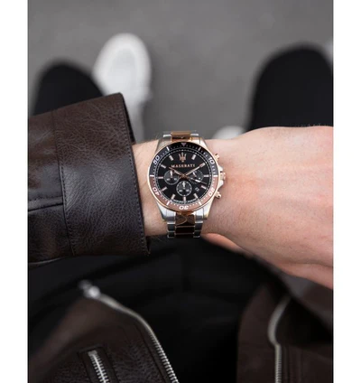 ساعة مازيراتي للرجال أصلية موديل R8873640010 بلون اسود و استيك معدن بلون  فضي * روز جولد.