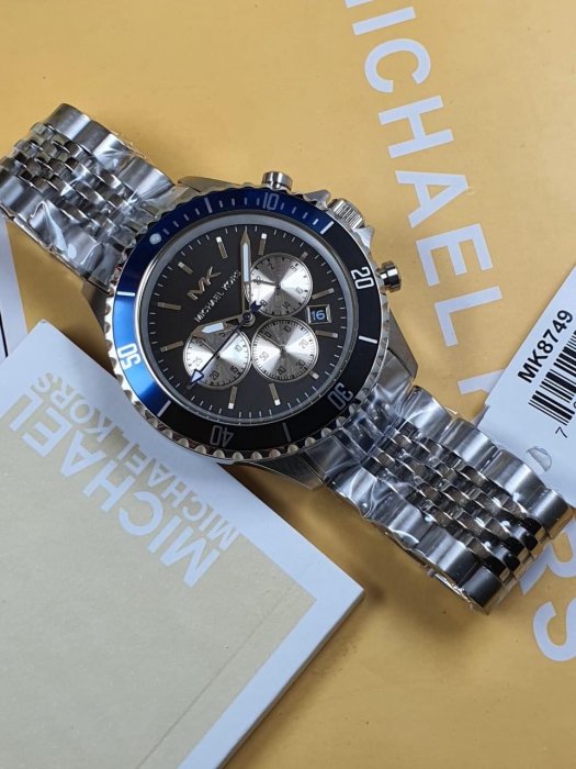 ساعة مايكل كورس أصلية للرجال موديل MK8749 لون اسود و اوستيك معدن ستانلس لون فضي.