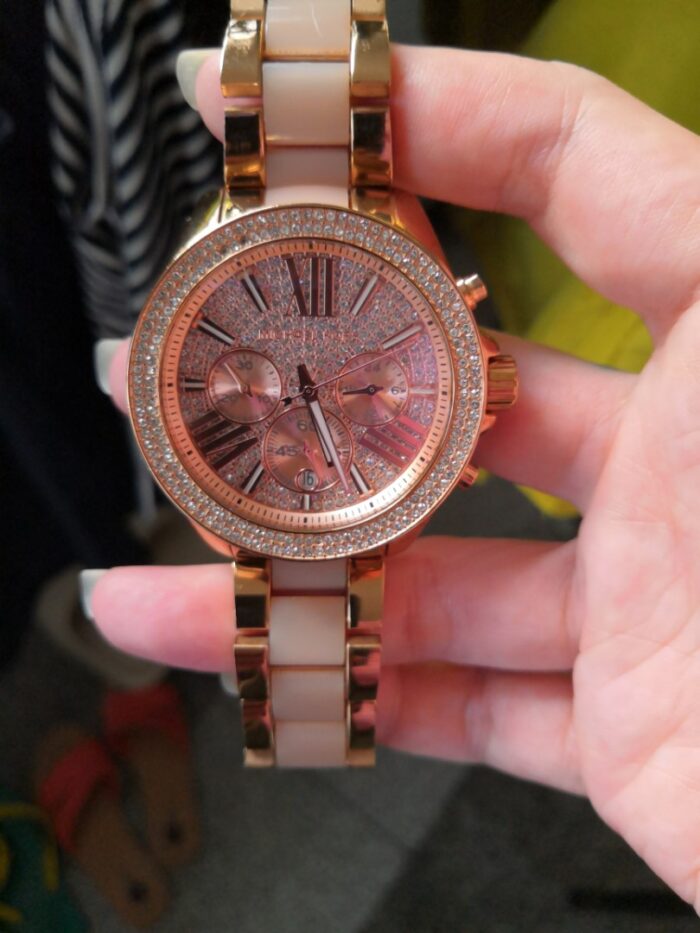 ساعة مايكل كورس للنساء اصلية موديلWren MK6096 لون روز جولد واستيك معدن ستانلس لون روز جولد.