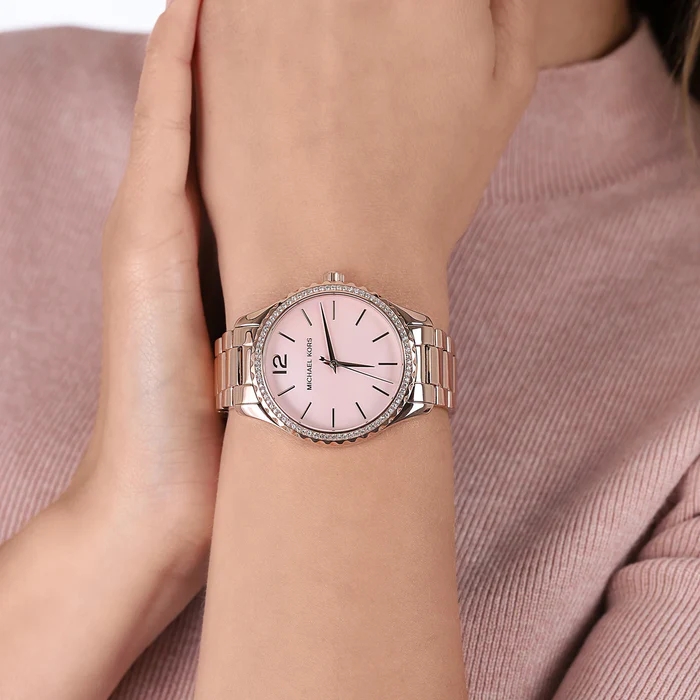 ساعة مايكل كورس للنساء أصلية موديل MK6848 لون وردي و استيك معدن ستانلس لون روز جولد.