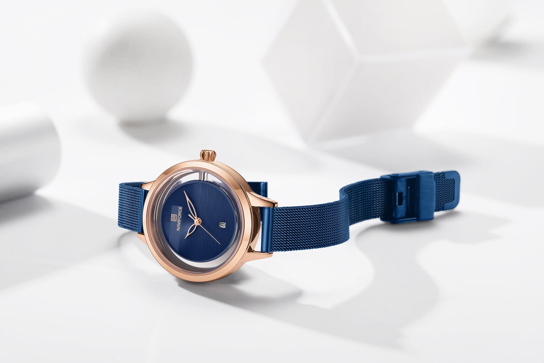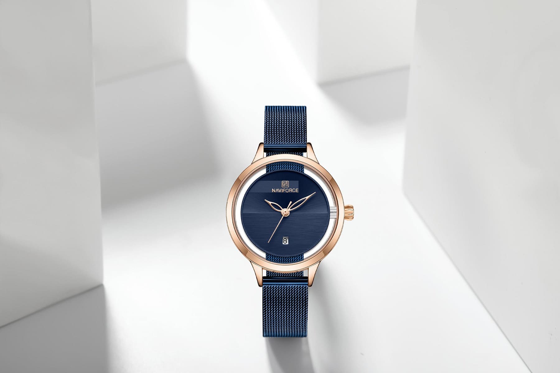 ساعة يد نافي فورس Naviforce NF5014 RG BE حريمي أصلية موديل ( NF5014 ) نظرية بلون مينا ازرق و استيك معدن بلون ازرق احصل عليها غدا خلال 24 ساعة داخل القاهرة و الجيزة و الاسكندرية