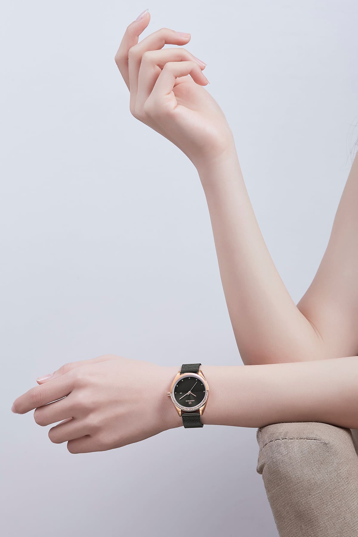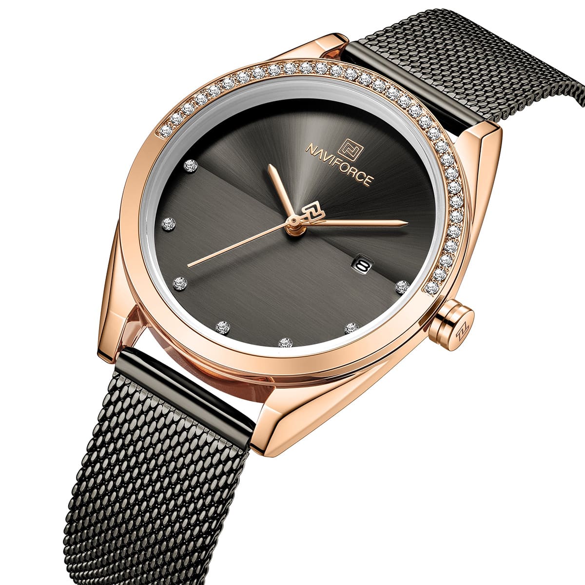 ساعة يد نافي فورس Naviforce NF5015 RG B حريمي أصلية موديل ( NF5015 ) نظرية بلون مينا اسود و استيك معدن بلون اسود احصل عليها غدا خلال 24 ساعة داخل القاهرة و الجيزة و الاسكندرية