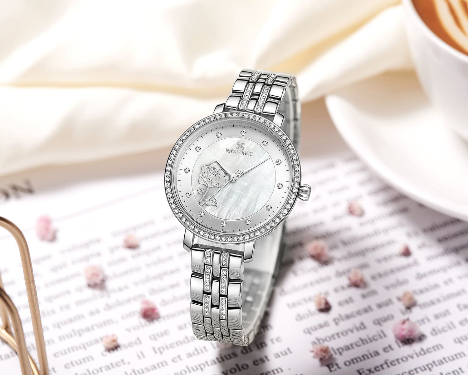 ساعة نافي فورس حريمي NF5017-S-W