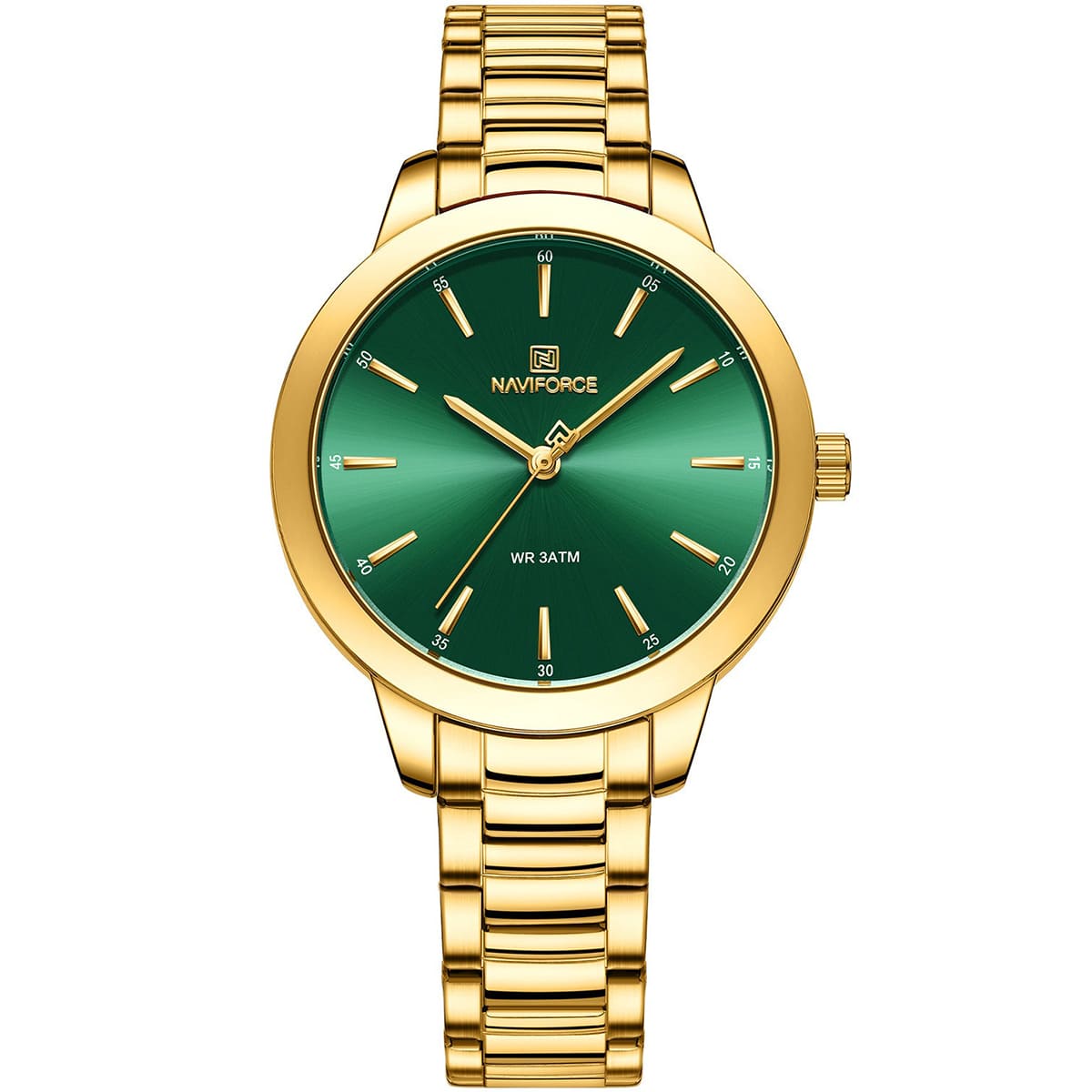 ساعة يد نافي فورس Naviforce NF5025 G GN حريمي أصلية موديل ( NF5025 ) نظرية بلون مينا اخضر و استيك معدن بلون ذهبي احصل عليها غدا خلال 24 ساعة داخل القاهرة و الجيزة و الاسكندرية