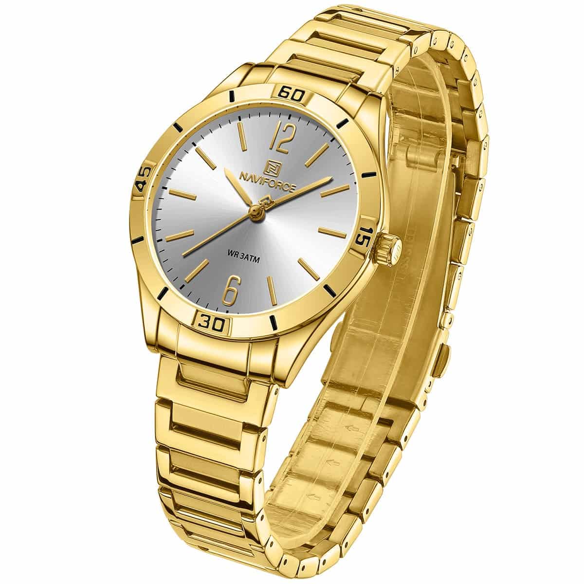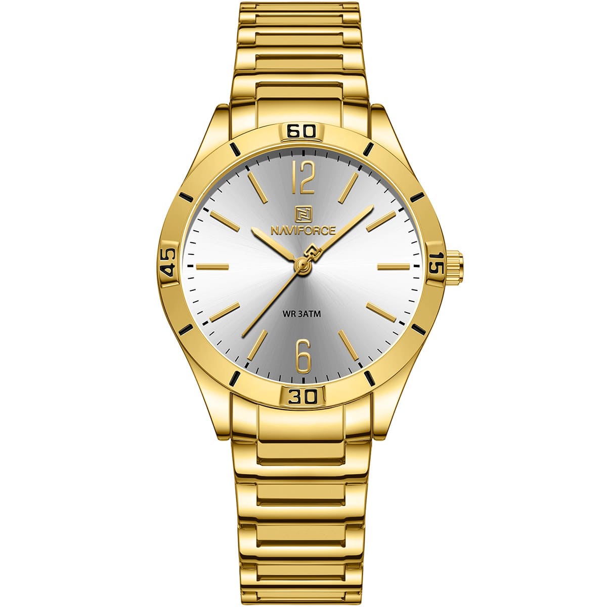 ساعة يد نافي فورس Naviforce NF 5029 G W حريمي أصلية موديل ( NF5029 ) نظريةبلون مينا ابيض و استيك معدن بلون ذهبي احصل عليها غدا خلال 24 ساعة داخل القاهرة و الجيزة و الاسكندرية