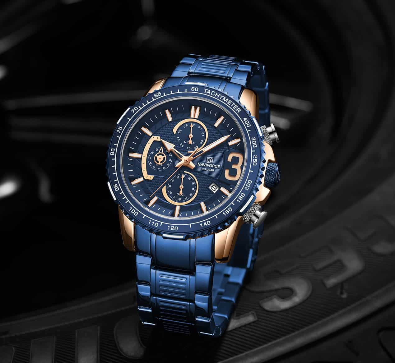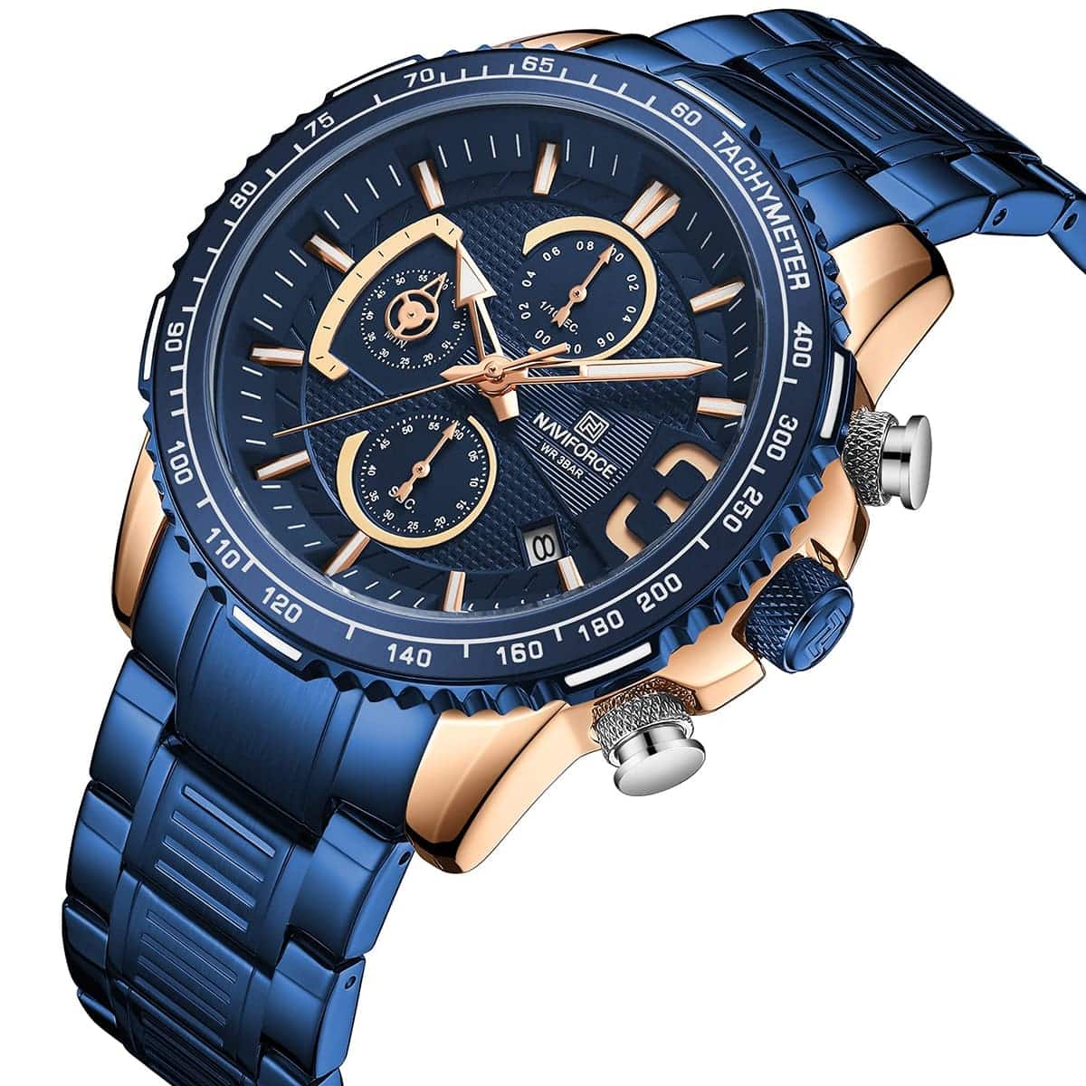 ساعة يد نافي فورس Naviforce NF8017 RG BE رجالي أصلية موديل ( NF8017 ) نظرية بلون مينا ازرق و استيك معدن بلون ازرق احصل عليها غدا خلال 24 ساعة داخل القاهرة و الجيزة و الاسكندرية