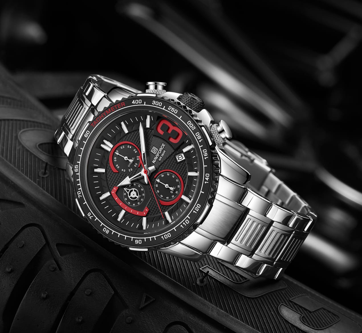 ساعة يد نافي فورس Naviforce NF8017 S B رجالي أصلية موديل ( NF8017 ) نظرية بلون مينا اسود و استيك معدن بلون فضي احصل عليها غدا خلال 24 ساعة داخل القاهرة و الجيزة و الاسكندرية