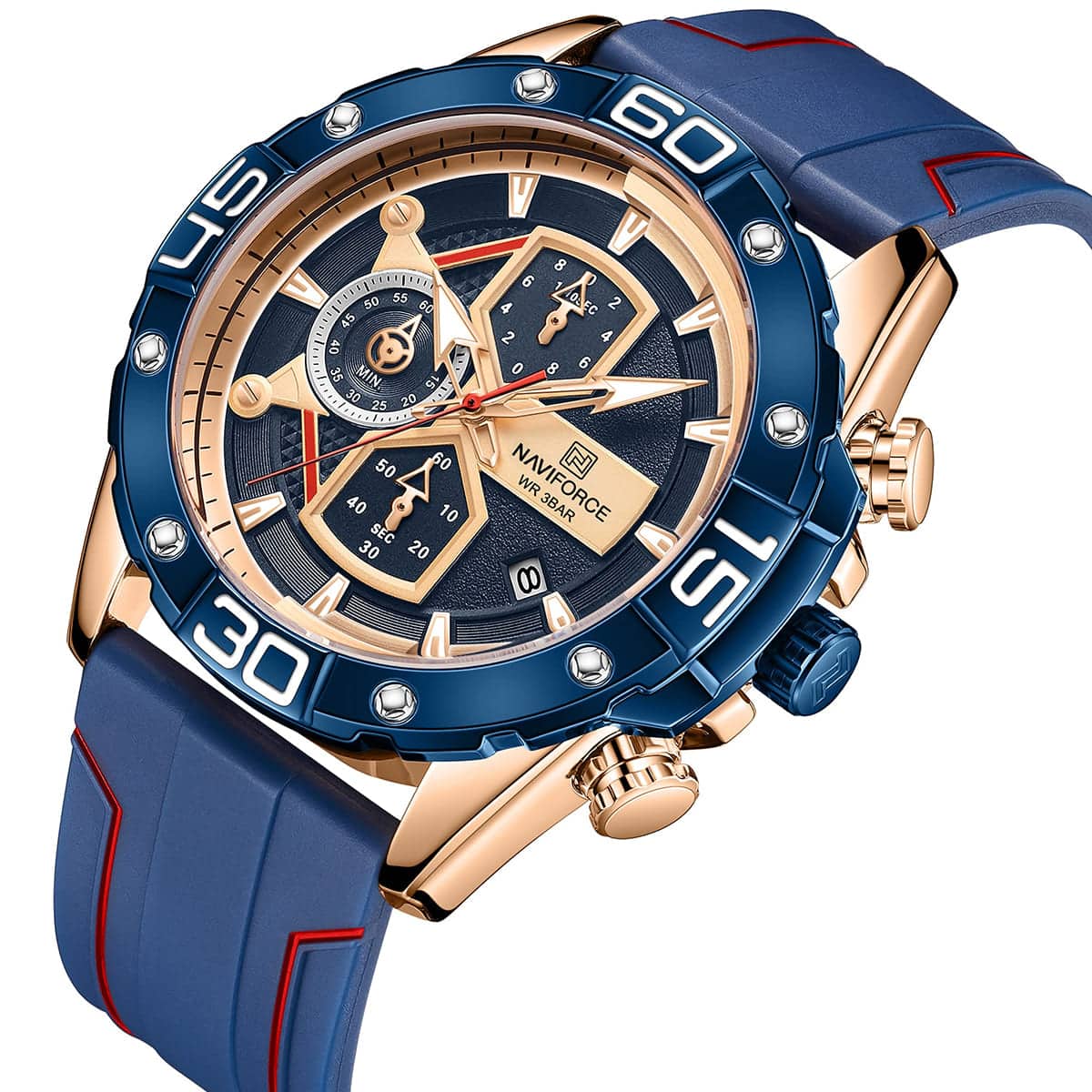 ساعة يد نافي فورس Naviforce NF8018T RG BE R رجالي أصلية موديل ( NF8018T ) نظرية بلون مينا ازرق و استيك سيليكون مطاط بلون ازرق احصل عليها غدا خلال 24 ساعة داخل القاهرة و الجيزة و الاسكندرية