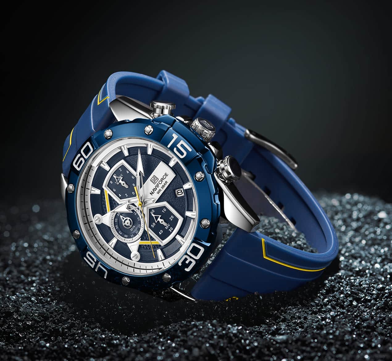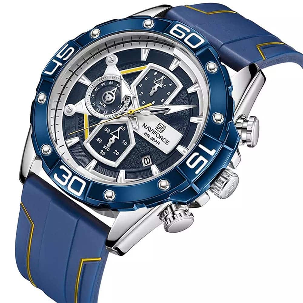 ساعة يد نافي فورس Naviforce NF8018T S BE Y رجالي أصلية موديل ( NF8018T ) نظرية بلون مينا ازرق و استيك سيليكون مطاط بلون ازرق احصل عليها غدا خلال 24 ساعة داخل القاهرة و الجيزة و الاسكندرية