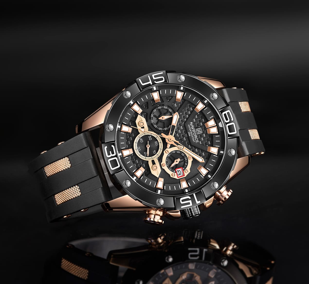 ساعة يد نافي فورس Naviforce NF8019T RG B B رجالي أصلية موديل ( NF8019T ) نظرية بلون مينا اسود و استيك سيليكون مطاط بلون اسود احصل عليها غدا خلال 24 ساعة داخل القاهرة و الجيزة و الاسكندرية