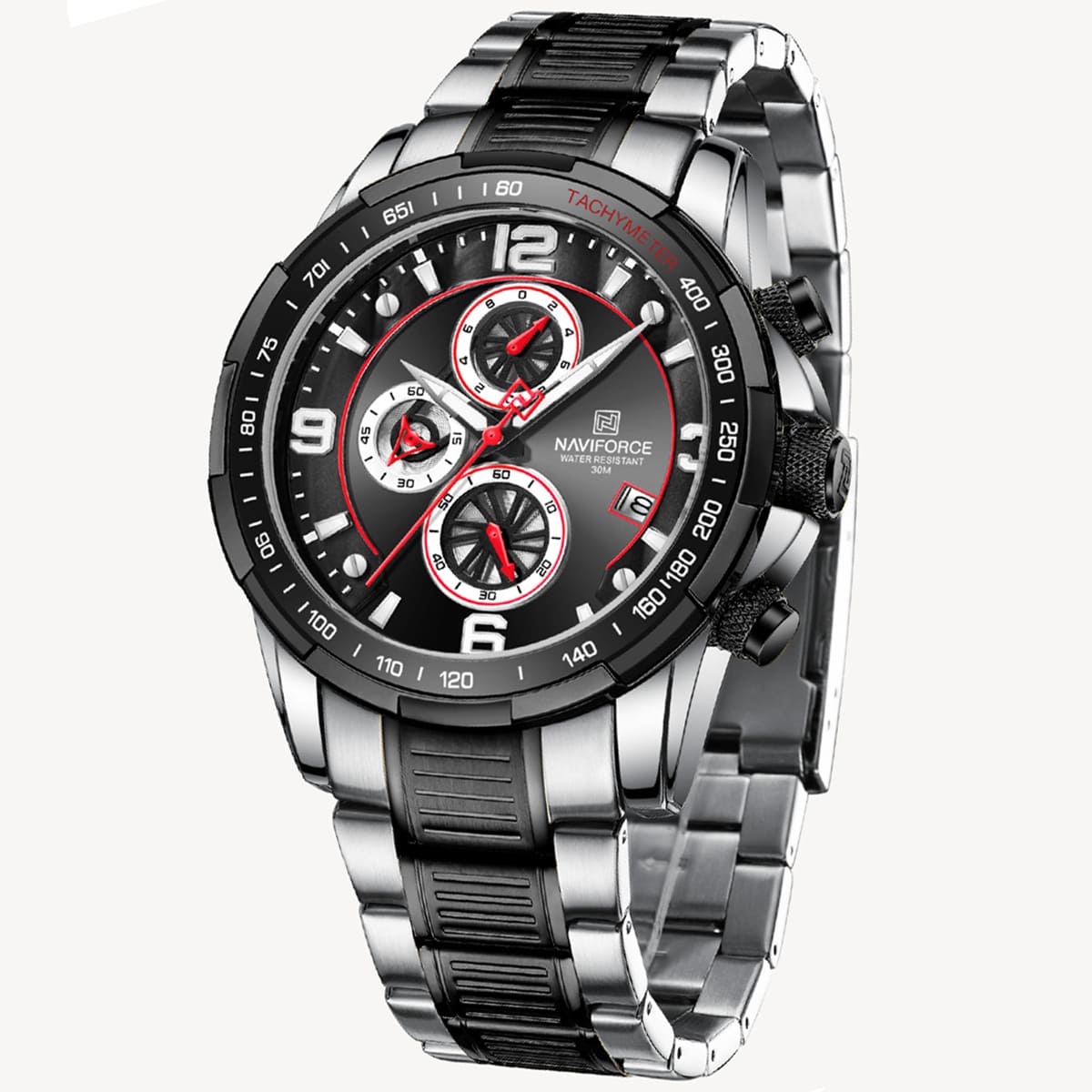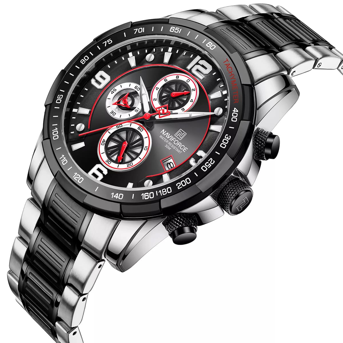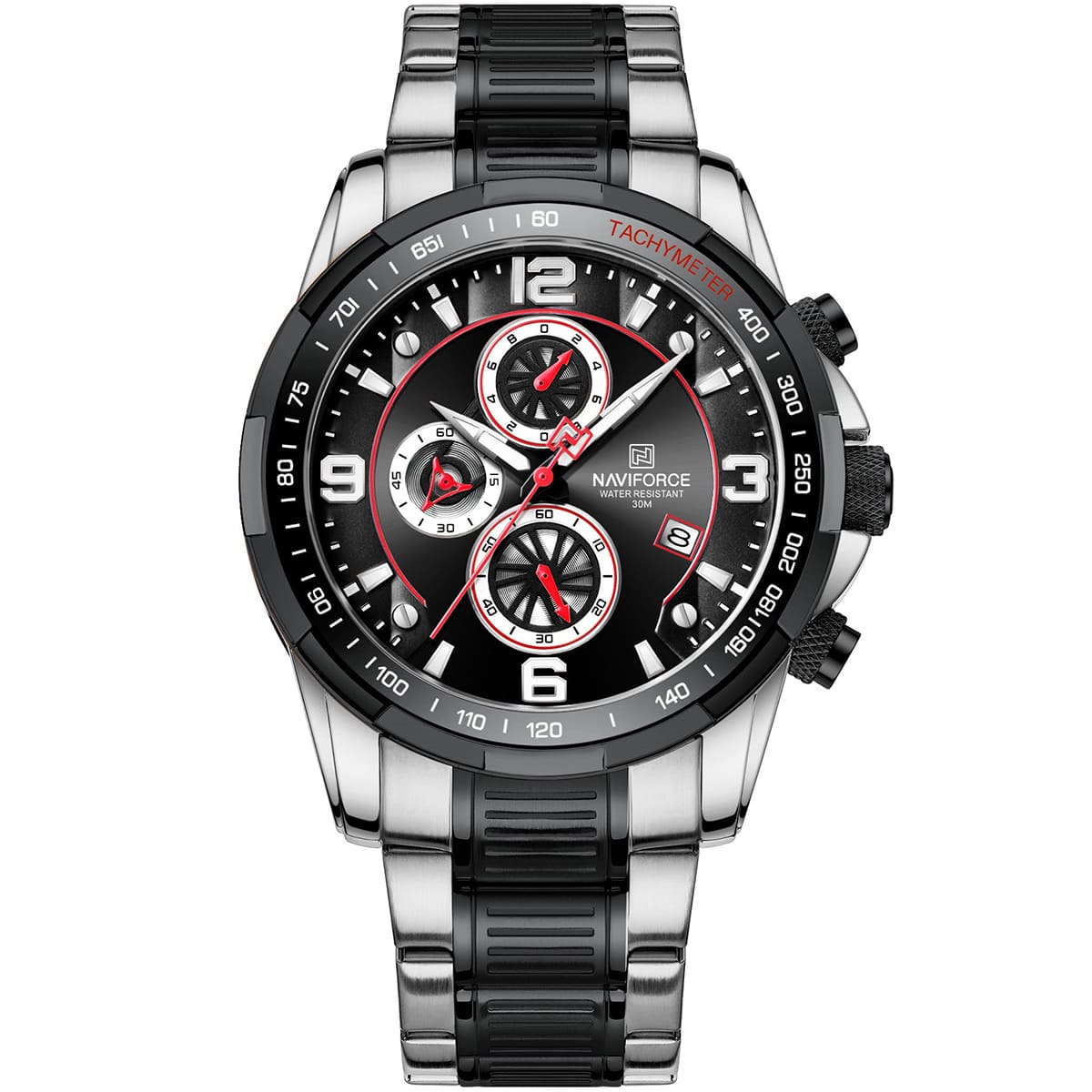 ساعة يد نافي فورس Naviforce NF8020S S B رجالي أصلية موديل ( NF8020S ) نظرية بلون مينا اسود و استيك معدن بلون اسود و فضي احصل عليها غدا خلال 24 ساعة داخل القاهرة و الجيزة و الاسكندرية