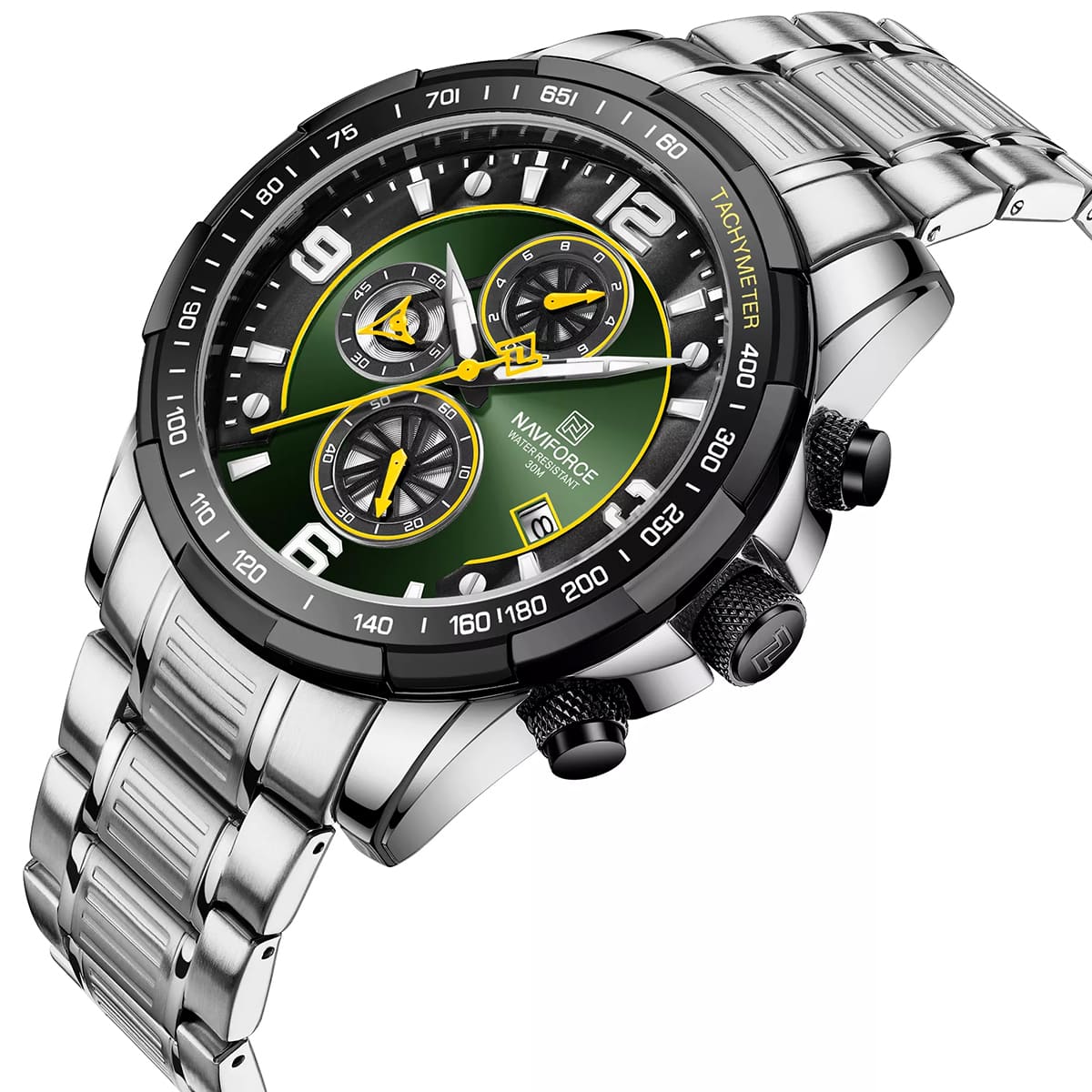 ساعة يد نافي فورس Naviforce NF8020S S GN رجالي أصلية موديل ( NF8020S ) نظرية بلون مينا اخضر و استيك معدن بلون فضي احصل عليها غدا خلال 24 ساعة داخل القاهرة و الجيزة و الاسكندرية