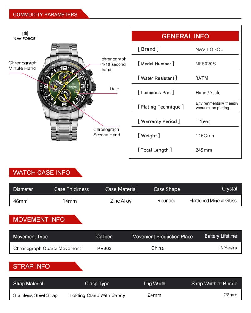 ساعة نافي فورس رجالي NF8020S-S-GN