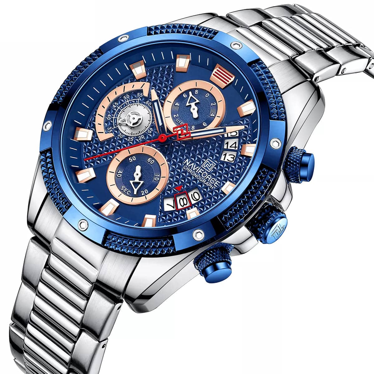 ساعة يد نافي فورس Naviforce NF8021 S BE رجالي أصلية موديل ( NF8021 ) نظرية بلون مينا ازرق و استيك معدن بلون فضي احصل عليها غدا خلال 24 ساعة داخل القاهرة و الجيزة و الاسكندرية