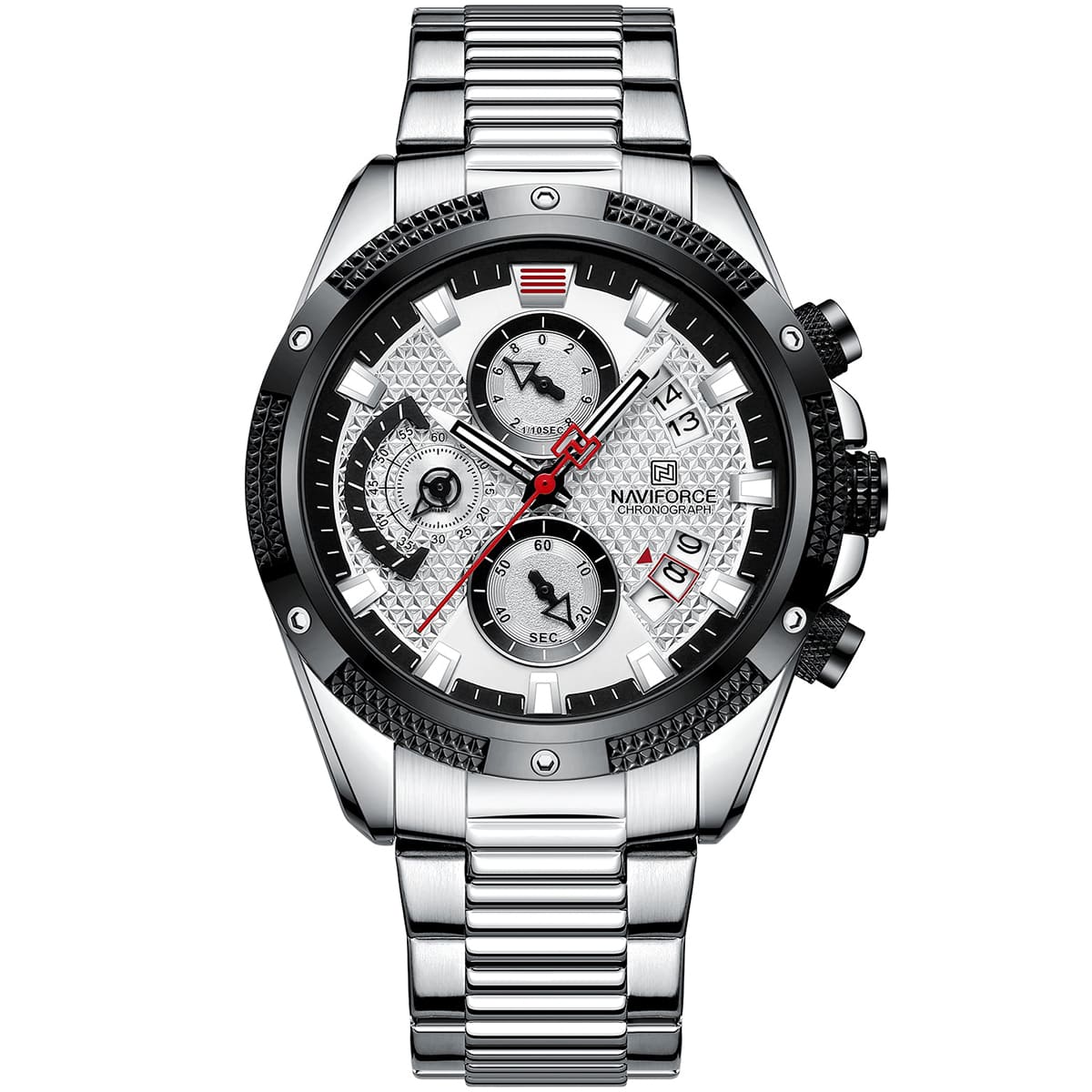 ساعة يد نافي فورس Naviforce NF8021 S W رجالي أصلية موديل ( NF8021 ) نظرية بلون مينا ابيض و استيك معدن بلون فضي احصل عليها غدا خلال 24 ساعة داخل القاهرة و الجيزة و الاسكندرية