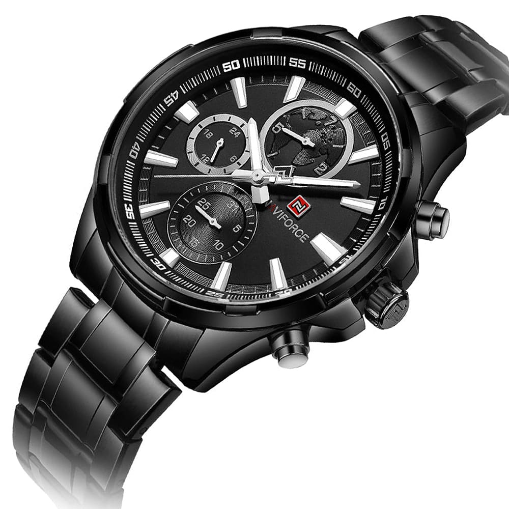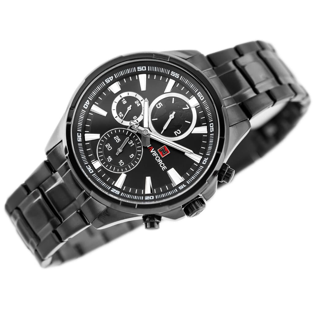 ساعة يد نافي فورس Naviforce NF9089S B B رجالي أصلية موديل ( NF9089S ) نظريةبلون مينا اسود و استيك معدن بلون اسود احصل عليها غدا خلال 24 ساعة داخل القاهرة و الجيزة و الاسكندرية