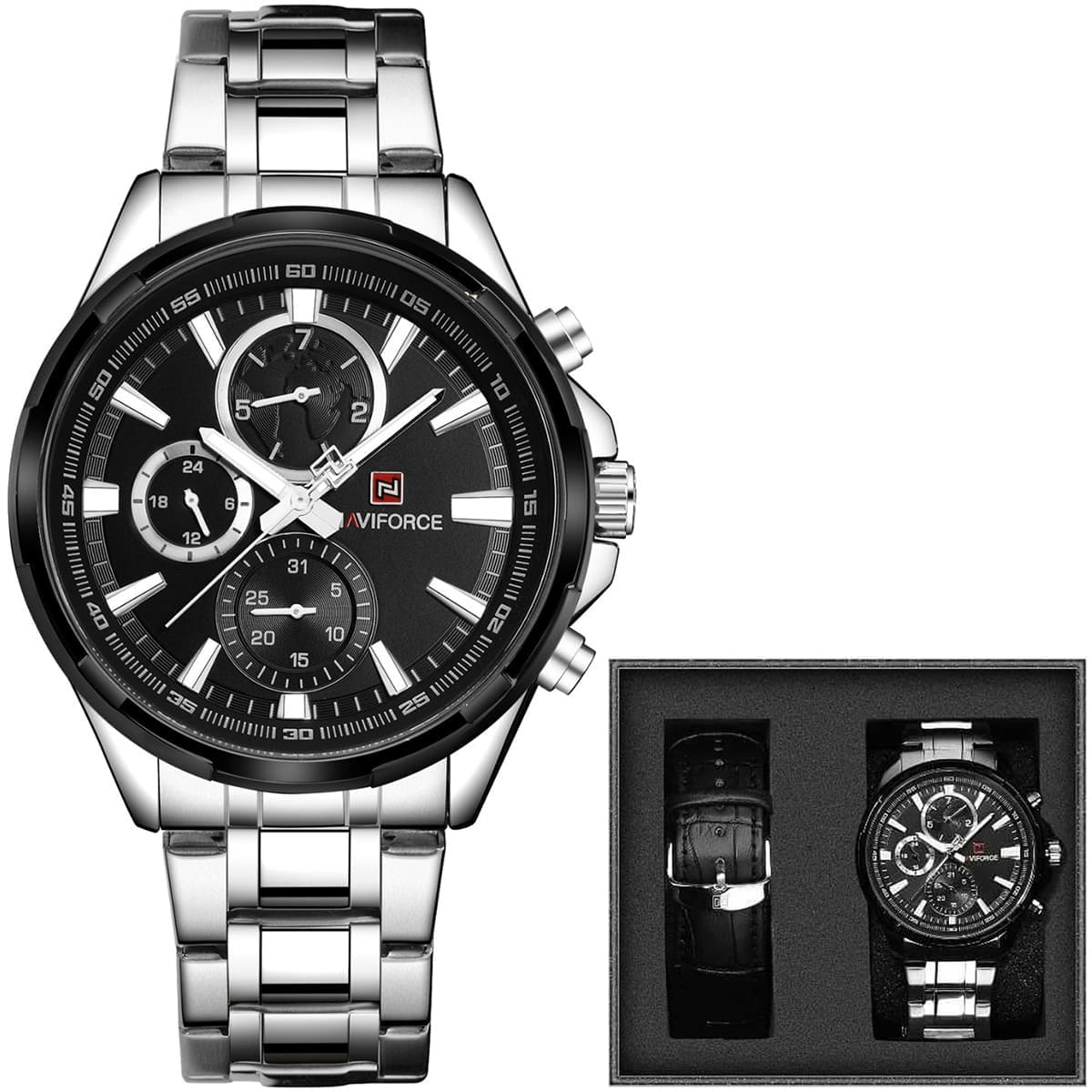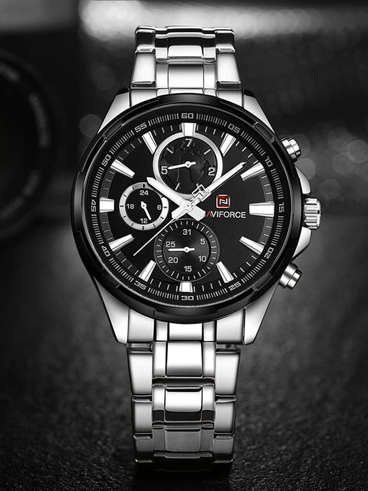 ساعة يد نافي فورس Naviforce NF9089S S B رجالي أصلية موديل ( NF9089S ) نظريةبلون مينا اسود و استيك معدن بلون فضي احصل عليها غدا خلال 24 ساعة داخل القاهرة و الجيزة و الاسكندرية